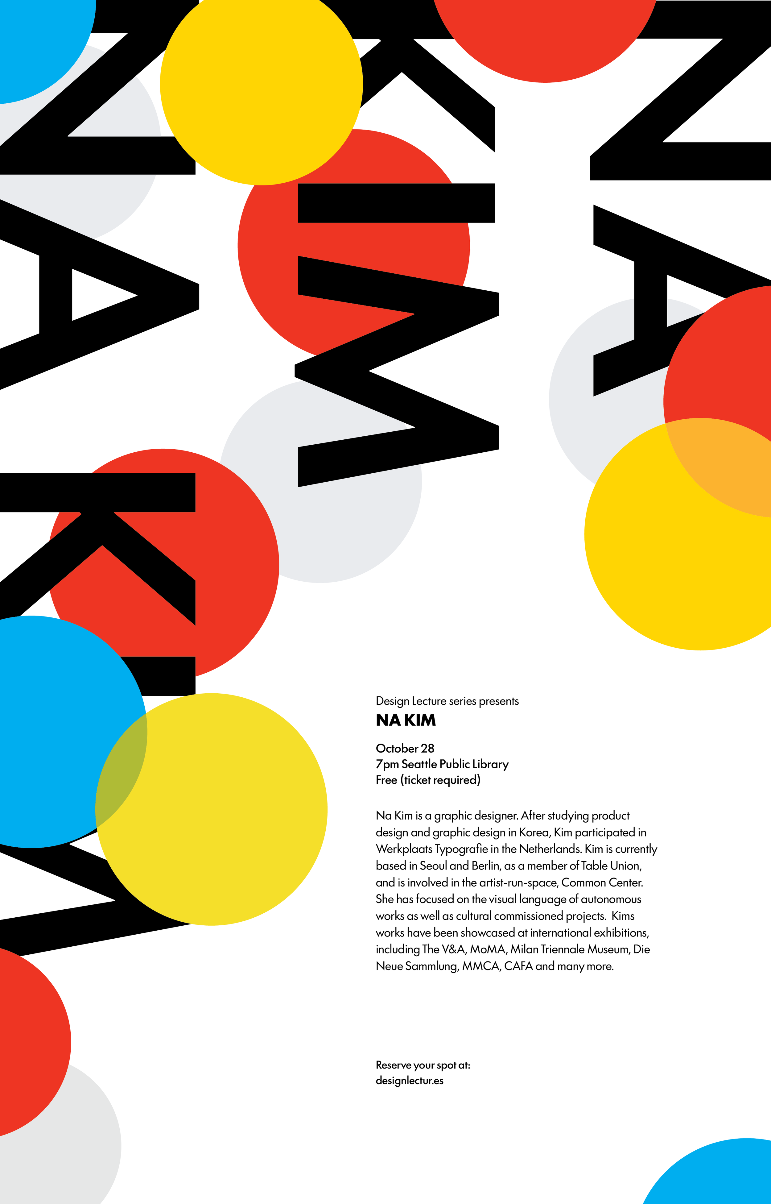 Topic is to design a poster for a designer’s lecture series. My designer was Na Kim. Project timeline was 2 weeks.
